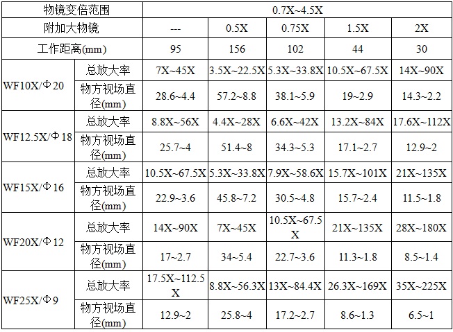 - 物镜:0.7×~4.5×